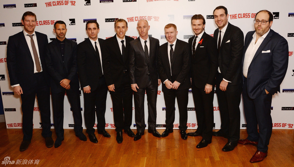 北京时间12月2日凌晨,贝克汉姆、吉格斯、内维尔兄弟等曼联92黄金一代球员携家属出席在伦敦西区剧场举行的纪录片《92一代》首映式,众多演艺界名流云集。